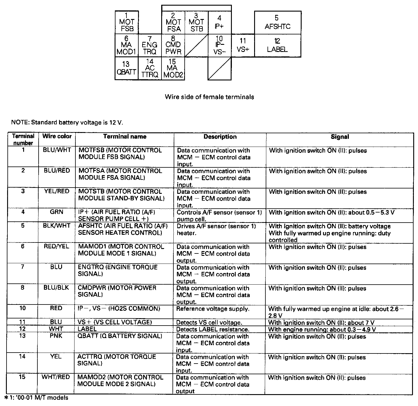 ECM/PCM Inputs And Outputs At Connector B (25P) Part 1: