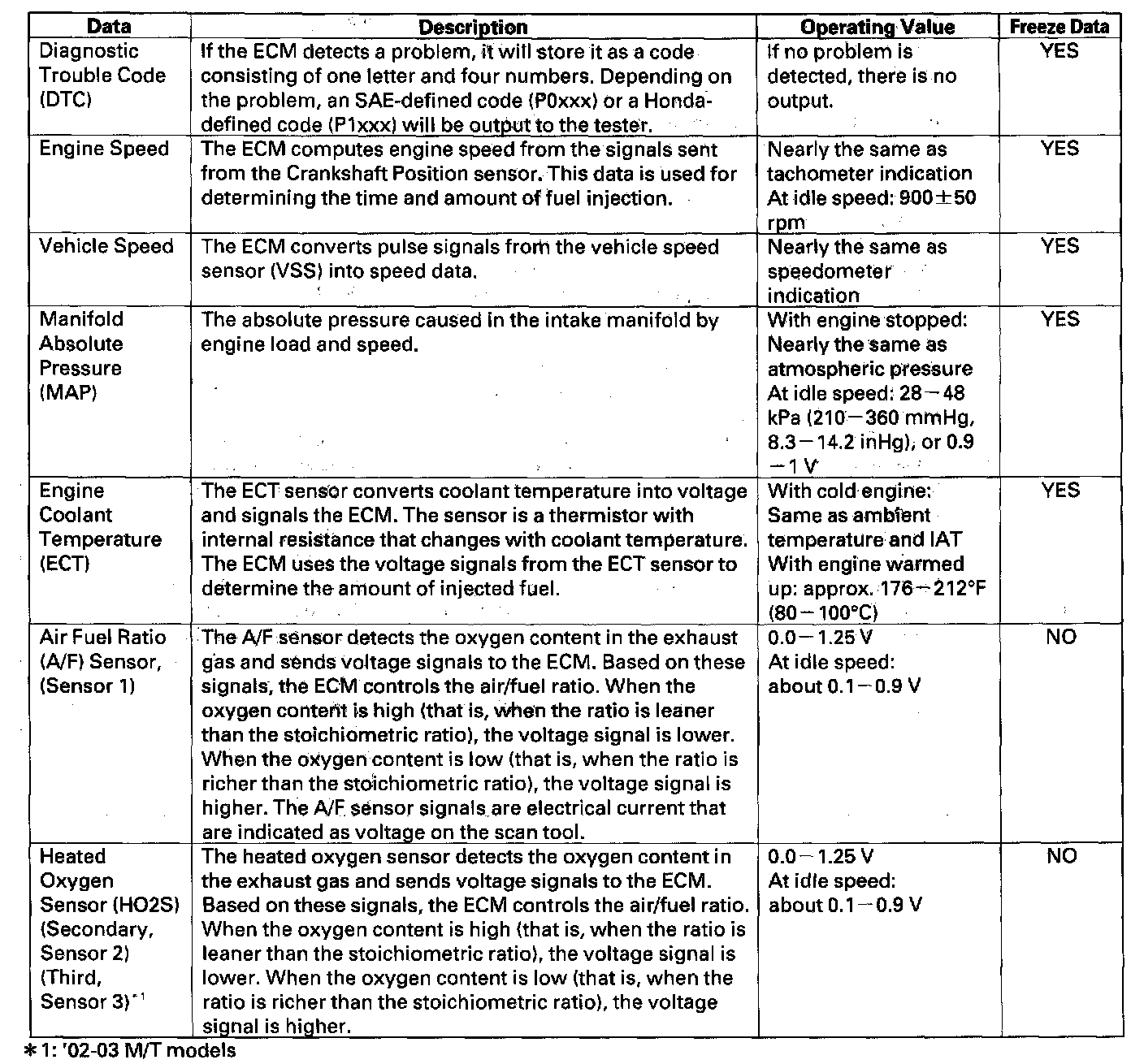 Home >> Honda >> 2003 >> Insight L3-1.0L Hybrid >> Repair and Diagnosis >> Powertrain Management >> Computers and Control Systems >> Testing and Inspection >> Scan Tool Testing and Procedures >> Normal Scan Data Values