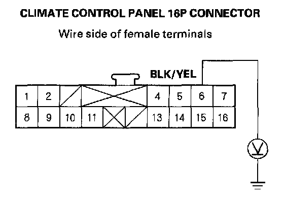 4. Measure the voltage between the No.6 terminal of the climate control panel 16P connector and body ground.