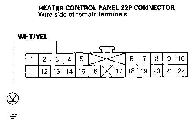 6. Measure the voltage between the No.3 terminal of the heater control panel 22P connector and body ground.