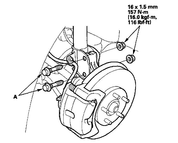 The front camber can be adjusted by exchanging one or both of the damper pinch bolts with a smaller diameter adjusting bolt, P/N 90120-S0X-A00. The difference between the adjusting bolt diameter and the pinch bolt hole diameter allows for a small range of adjustment.