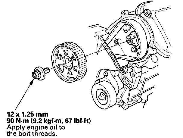 4. Loosen the idler pulley bolt about five or six turns, then remove the timing belt from the front camshaft pulley (see step 16).