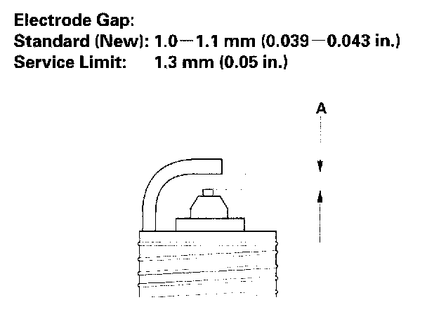 2. Do not adjust the gap of platinum tip plugs (A); replace the spark plug if the gap is out of specification.