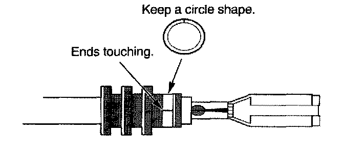 3. Strip the insulation off the end of the wire so the wire fits in the new terminal as shown. (If the wire has a wire seal, replace it with a new one from the kit.)