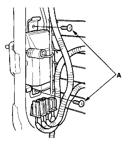 1. Place the new OPDS unit on the seat-back frame. Tighten the two screws (A), and connect the OPDS unit harness 8P connector and sensor connectors to the OPDS unit.