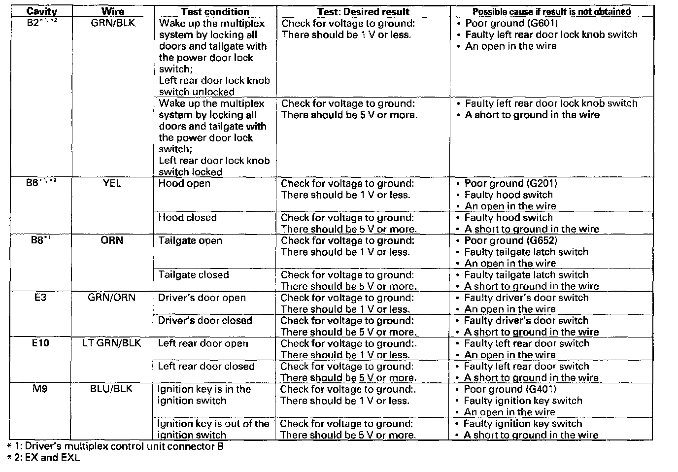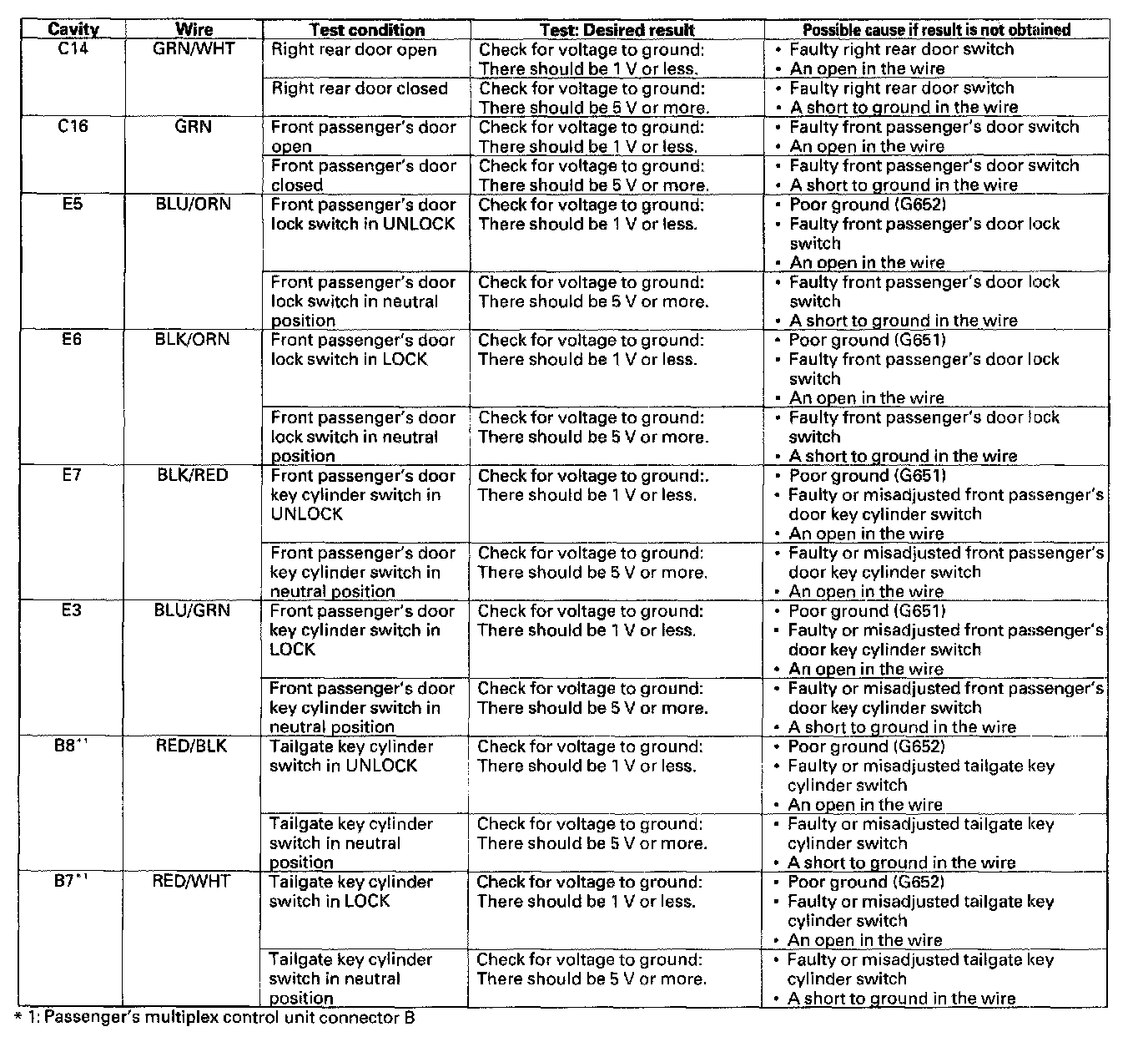 NOTE: These tests cover the door, driver's, and passenger's multiplex control units.