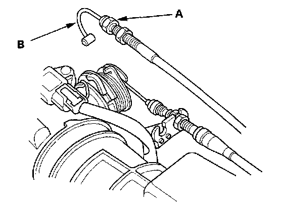 2. Loosen the locknut (A), then remove the actuator cable (B) from the throttle linkage.