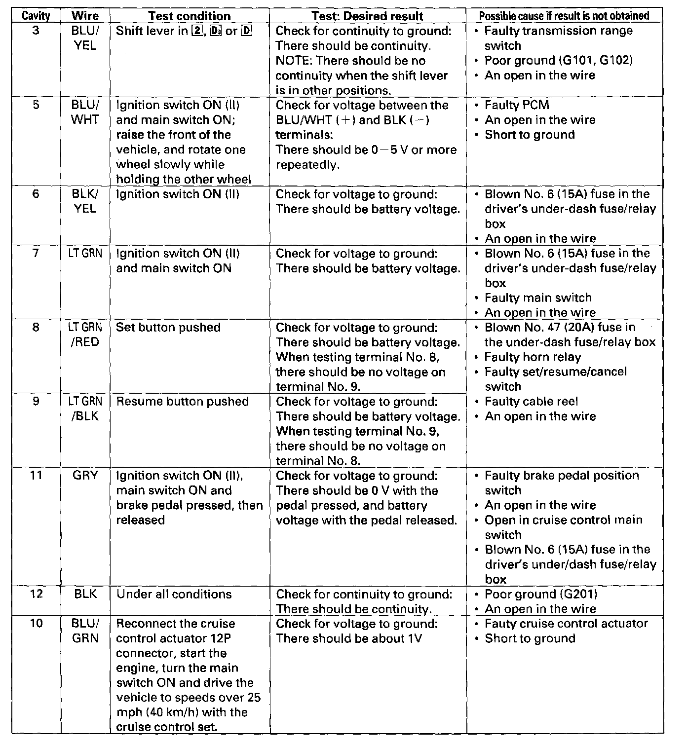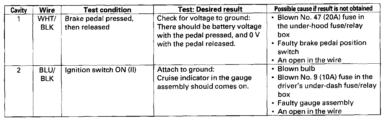 Home >> Honda >> 2003 >> Pilot V6-3.5L >> Repair and Diagnosis >> Cruise Control >> Cruise Control Servo >> Testing and Inspection