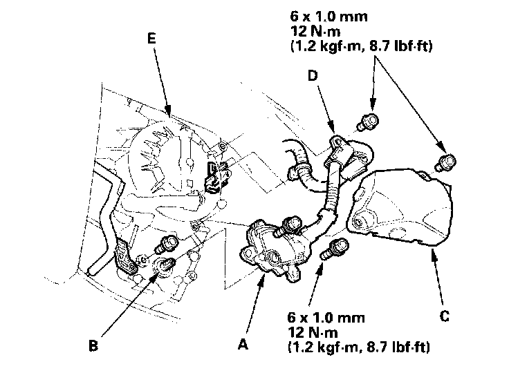 9. Install the transmission range switch cover (C), and the harness holder (D) on the end cover (E).