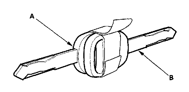 5. Tape the donor vehicle's ignition key head-to-head to the test vehicle's temporary key (A). The PCM will recognize the code from the donor vehicle's key (B) and allow you to start the engine with the temporary key.