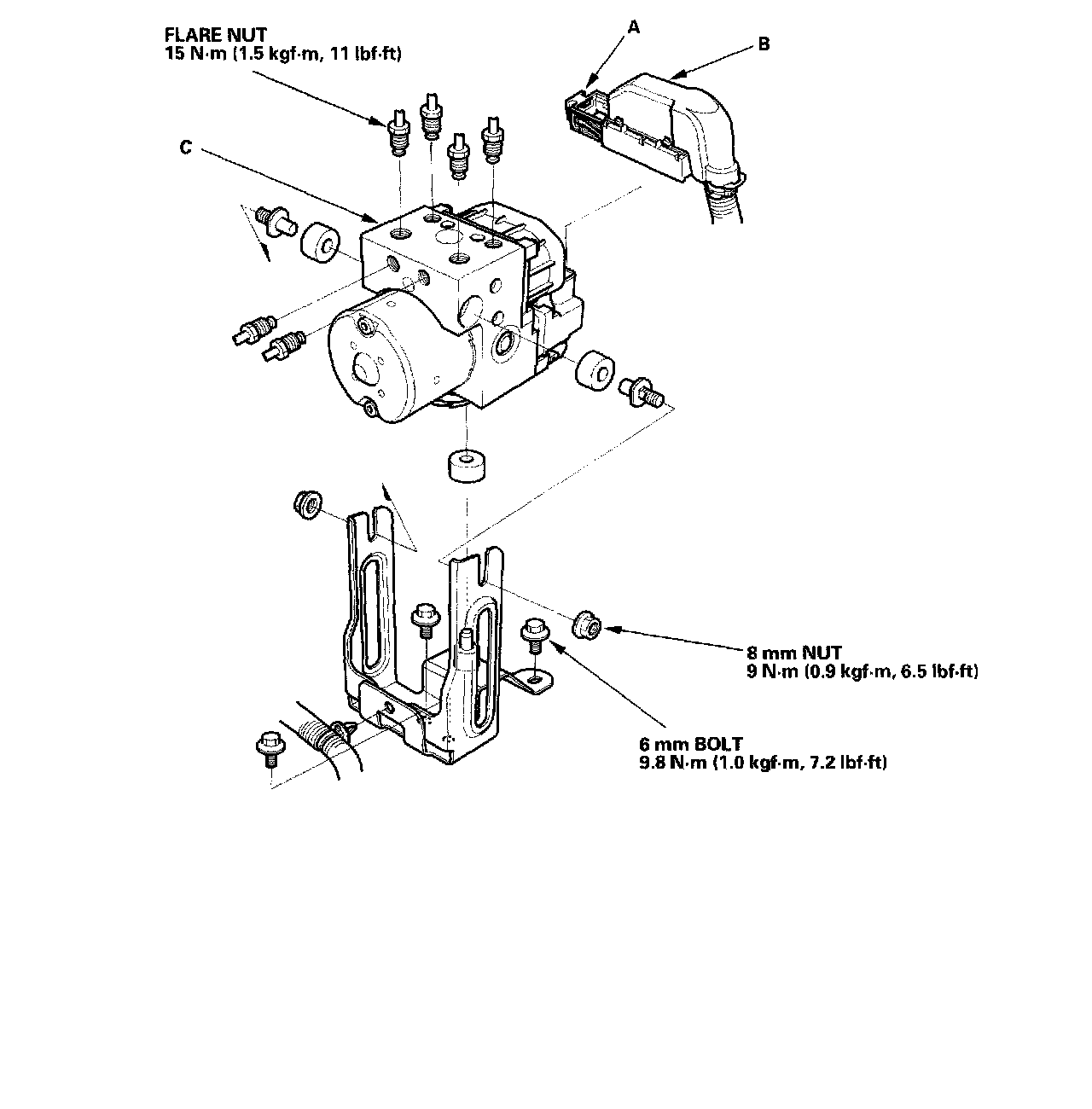 5. Remove the ABS modulator-control unit (C).