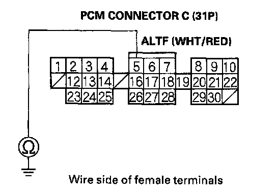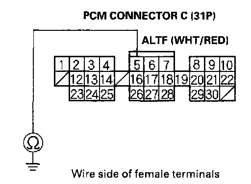 12. Check for continuity between body ground and PCM connector terminal C5.