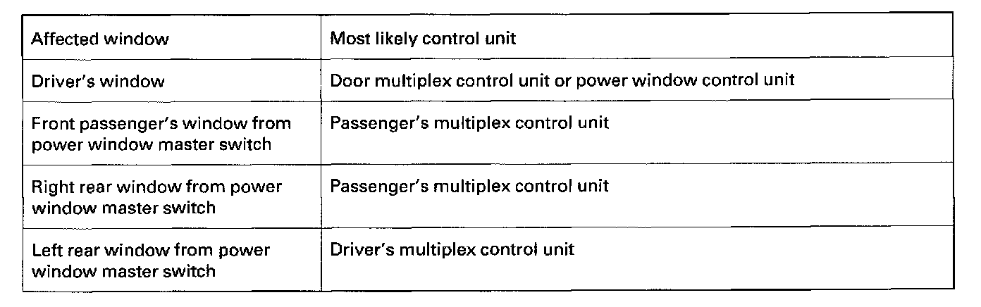 1. Before testing the power window control functions, troubleshoot the multiplex control system.