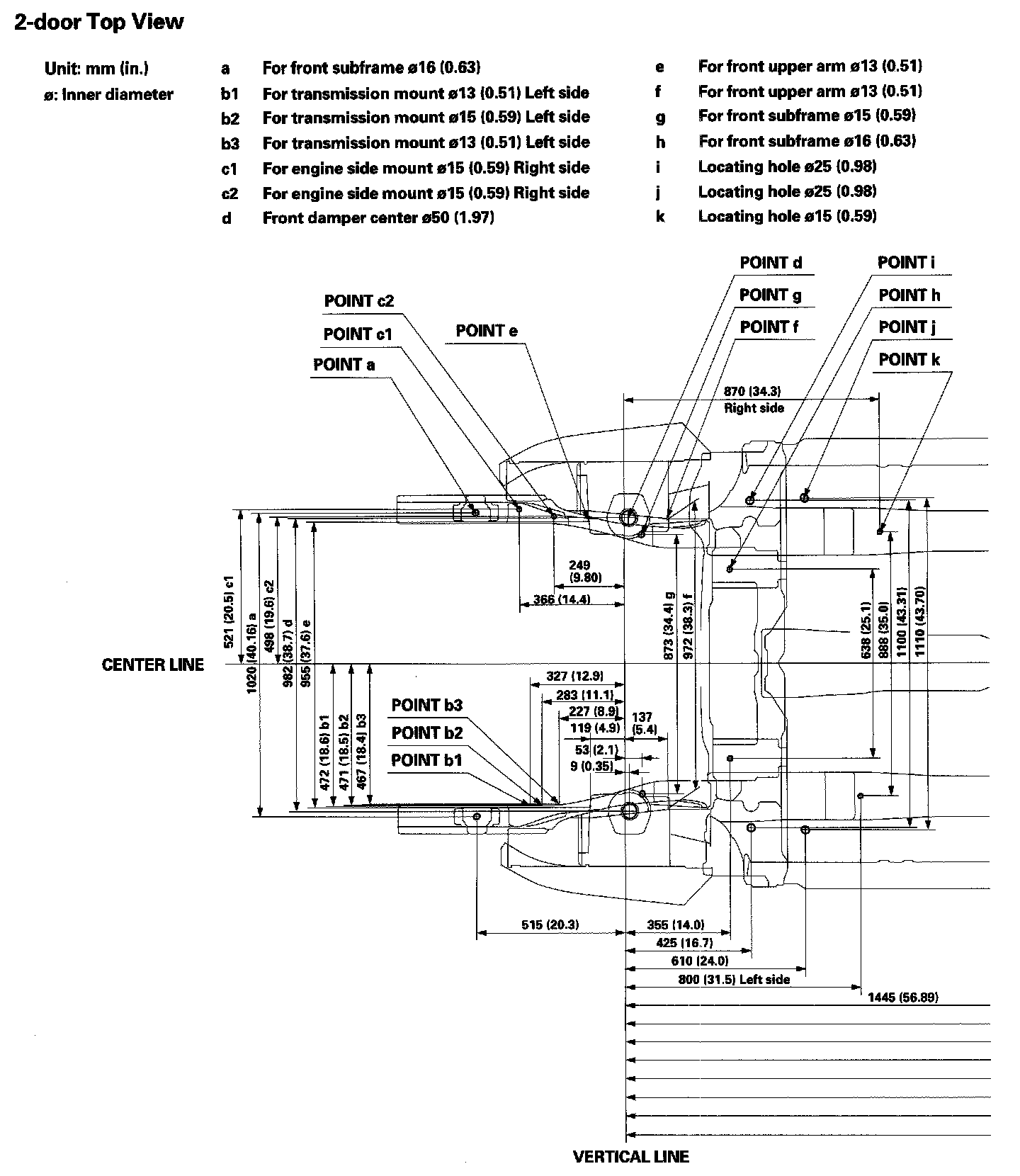 Frame Repair Chart - 2-door Top View Part 1 Of 2: