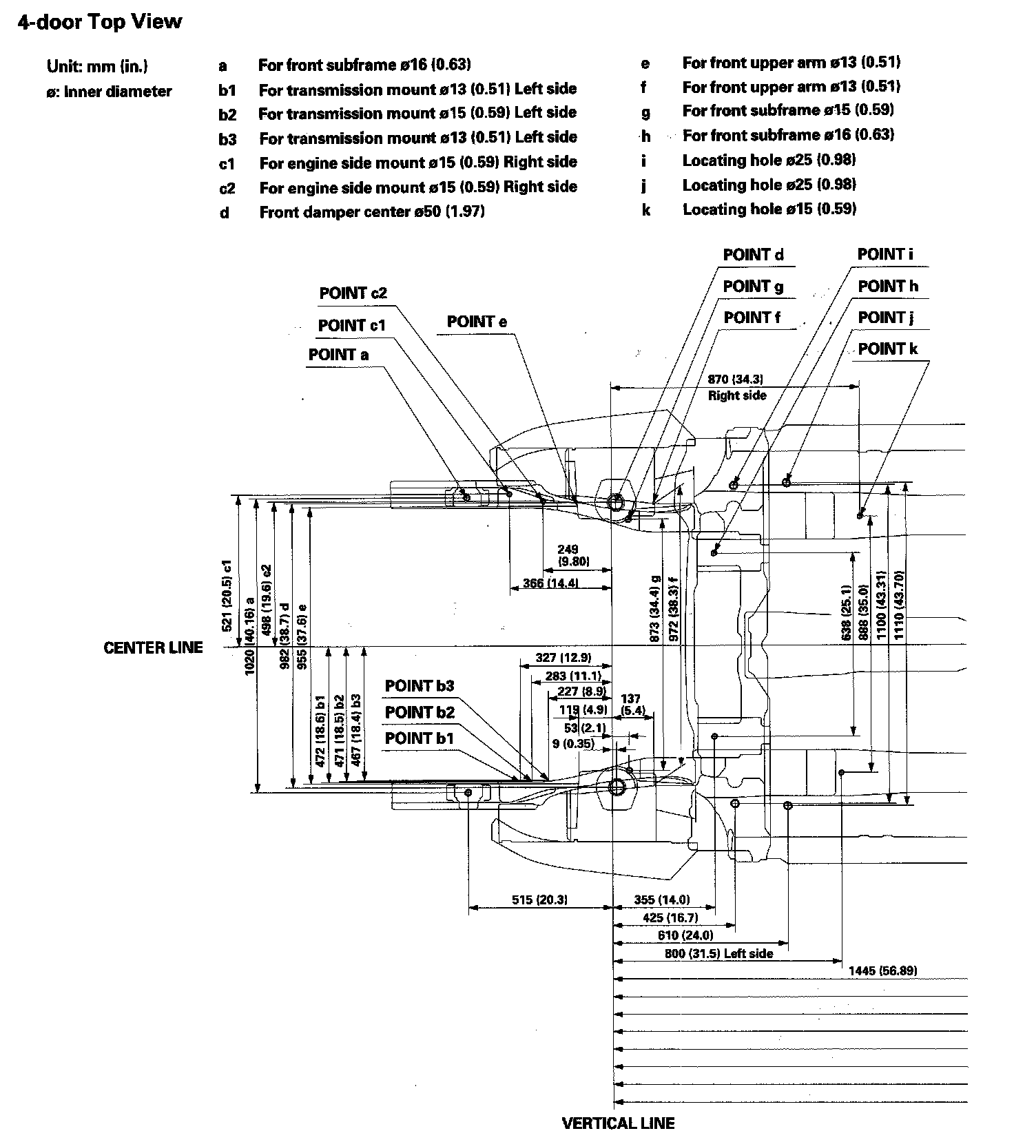 Frame Repair Chart - 4-door Top View Part 1 Of 2: