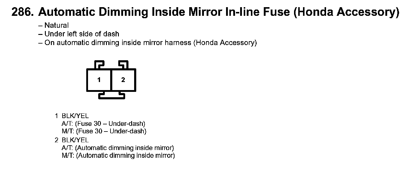 286. Automatic Dimming Inside Mirror In-line Fuse (Honda Accessory):