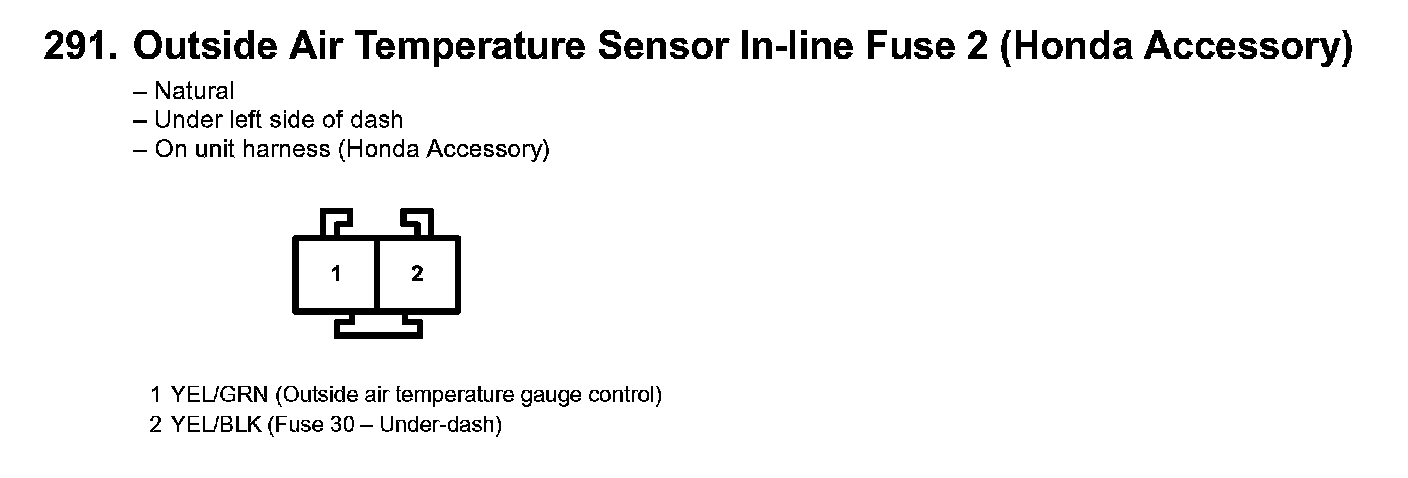 291. Outside Air Temperature Sensor In-line Fuse 2 (Honda Accessory):