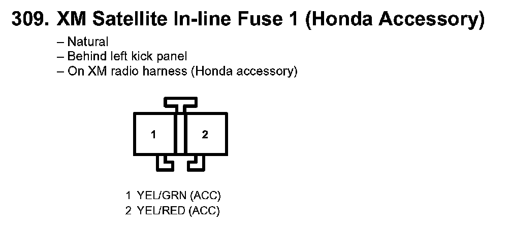 309. XM Satellite In-line Fuse 1 (Honda Accessory):