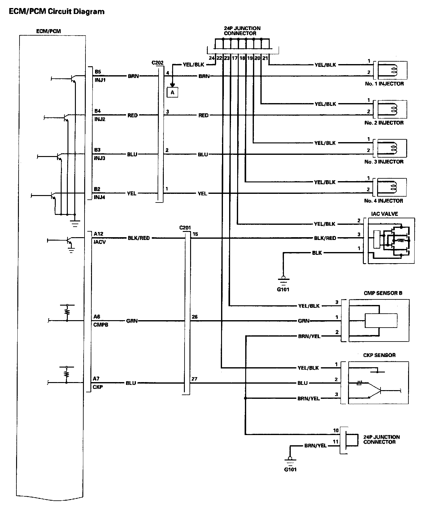 Home >> Honda >> 2004 >> Accord L4-2.4L >> Repair and Diagnosis >> Diagrams >> Electrical Diagrams >> Powertrain Management >> System Diagram >> Control Module Circuit Diagrams >> ECM/PCM Circuit Diagrams