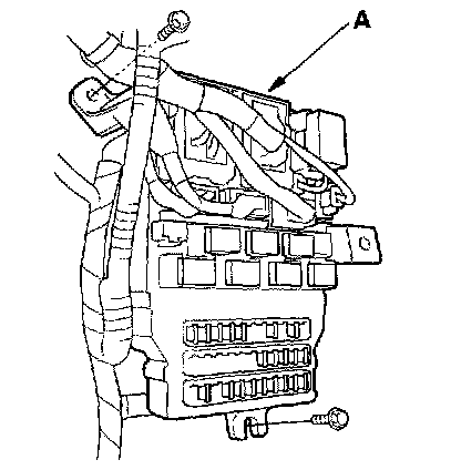 5. Disconnect the connectors from the fuse side of the under-dash fuse/relay box (A).