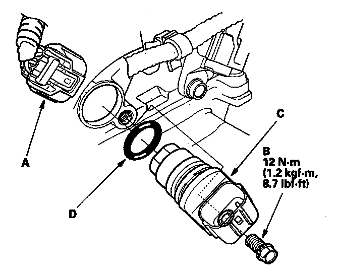 6. Install the sensor in the reverse order of removal with a new O-ring (D).