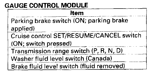 - DTC 5 only (no other DTCs present): Go to the gauge control module input test. If all inputs are OK, substitute a known-good gauge control module and then a MICU, one at a time, and then check for DTCs. If a DTC recurs after a substitution, replace that unit.