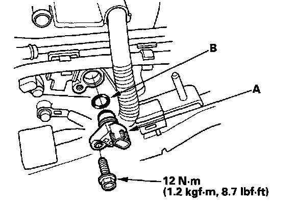 4. Install the sensor in the reverse order of removal with a new O-ring (B).