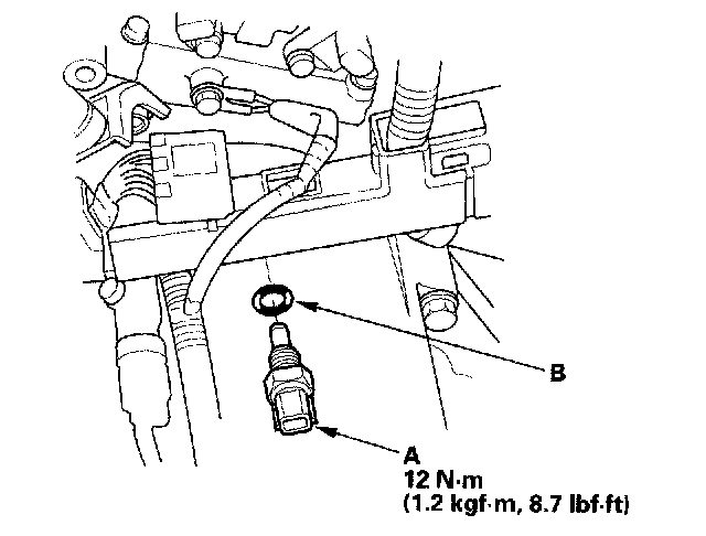 4. Install the sensor in the reverse order of removal with a new O-ring (B).