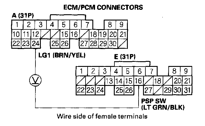 Home >> Honda >> 2004 >> CR-V 2WD L4-2.4L >> Repair and Diagnosis >> Powertrain Management >> Computers and Control Systems >> Testing and Inspection >> Component Tests and General Diagnostics >> PSP Switch Signal Circuit Troubleshooting