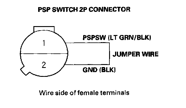 9. At the harness side, connect PSP switch 2P connector terminals No.1 and No.2 with a jumper wire.