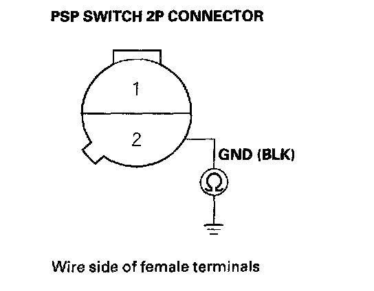 12. Check for continuity between PSP switch 2P connector terminal No.2 and body ground.
