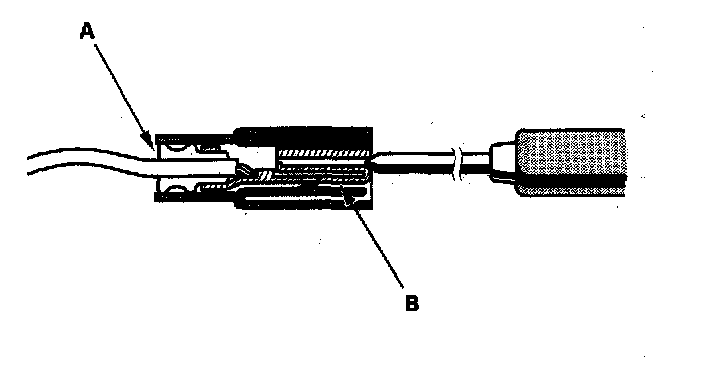 3. If you cannot get to the wire side of the connector or the wire side is sealed (A), disconnect the connector and probe the terminals (B) from the terminal side. Do not force the probe into the connector.