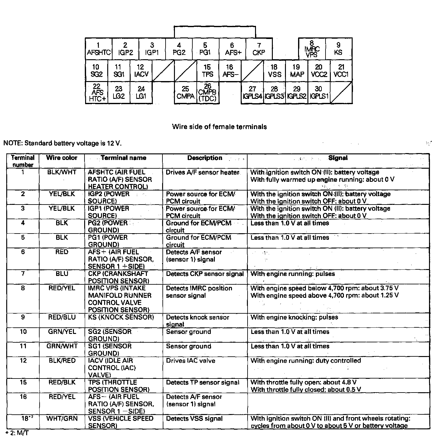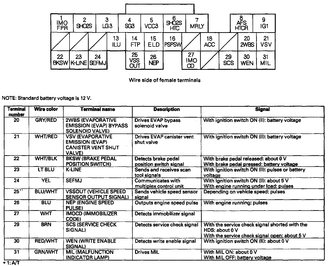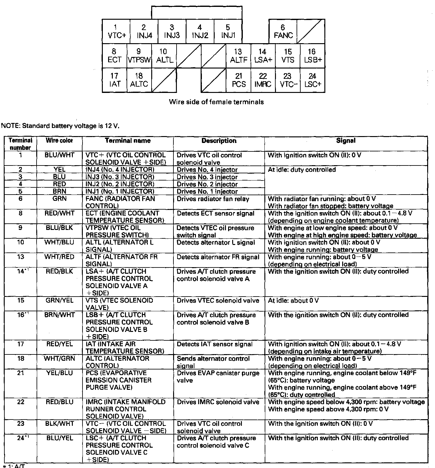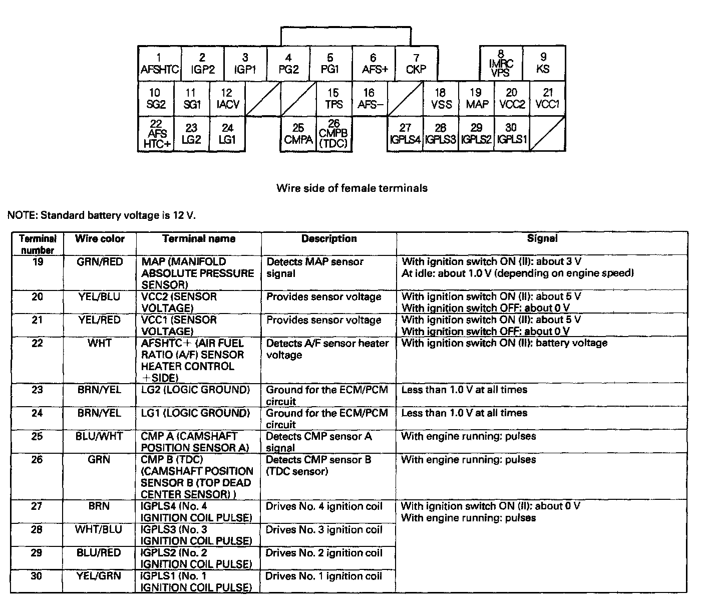 Home >> Honda >> 2004 >> CR-V 2WD L4-2.4L >> Repair and Diagnosis >> Relays and Modules >> Relays and Modules - Powertrain Management >> Relays and Modules - Computers and Control Systems >> Engine Control Module >> Testing and Inspection >> Pinout Values and Diagnostic Parameters