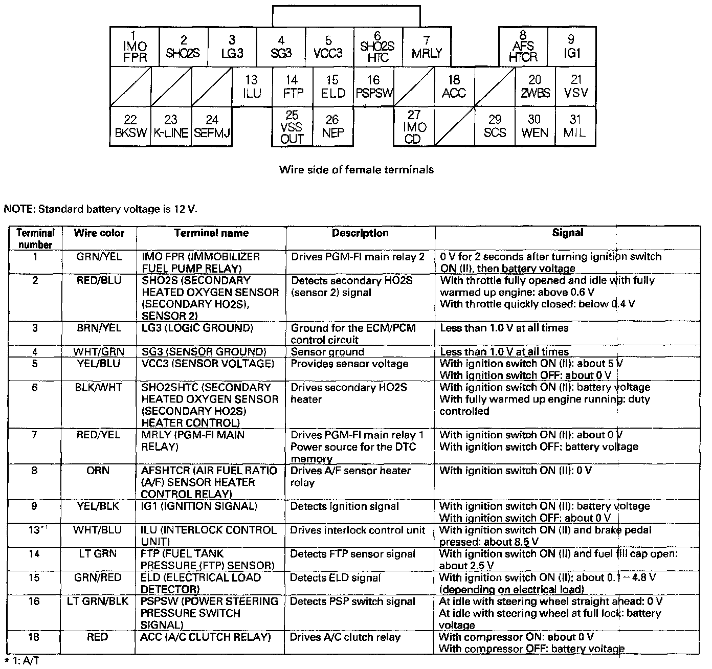ECM/PCM Inputs And Outputs At Connector A (31P):