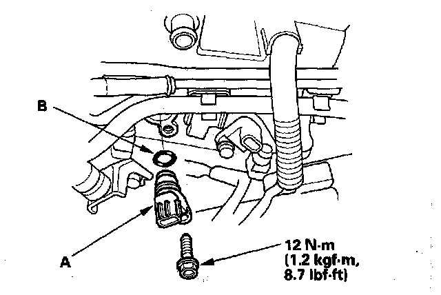 4. Install the sensor in the reverse order of removal with a new O-ring (B).