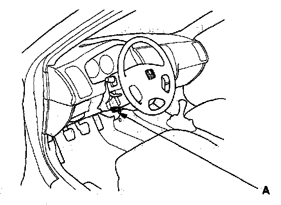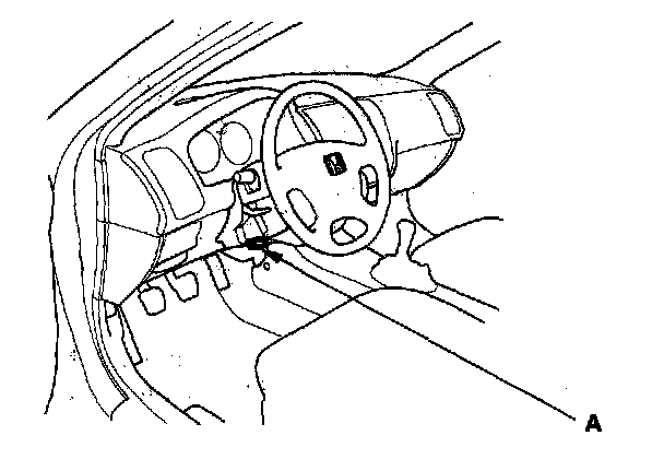 2. Connect the HDS or the Honda Interface Module (HIM) to the data link connector (DLC) (A) located under the driver's side of dashboard.