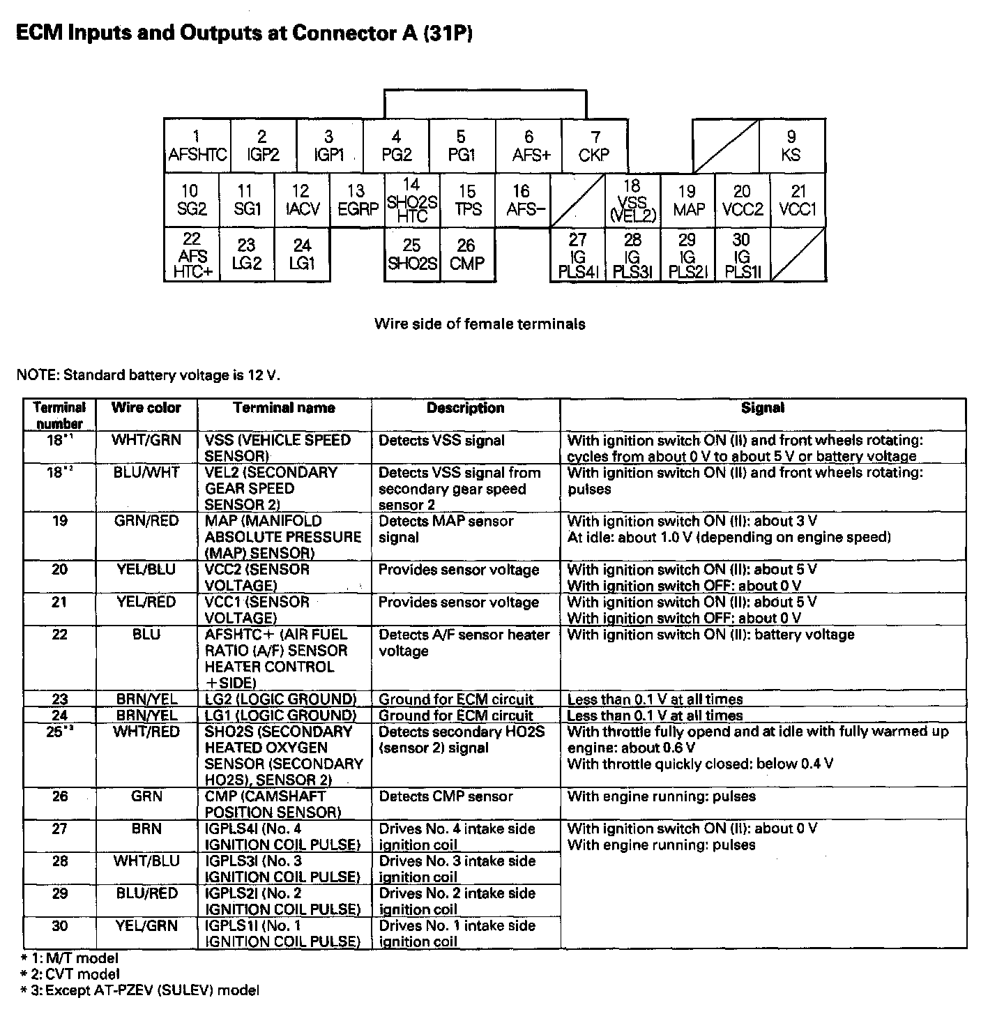 ECM Inputs And Outputs At Connector A (31P) Part 1: