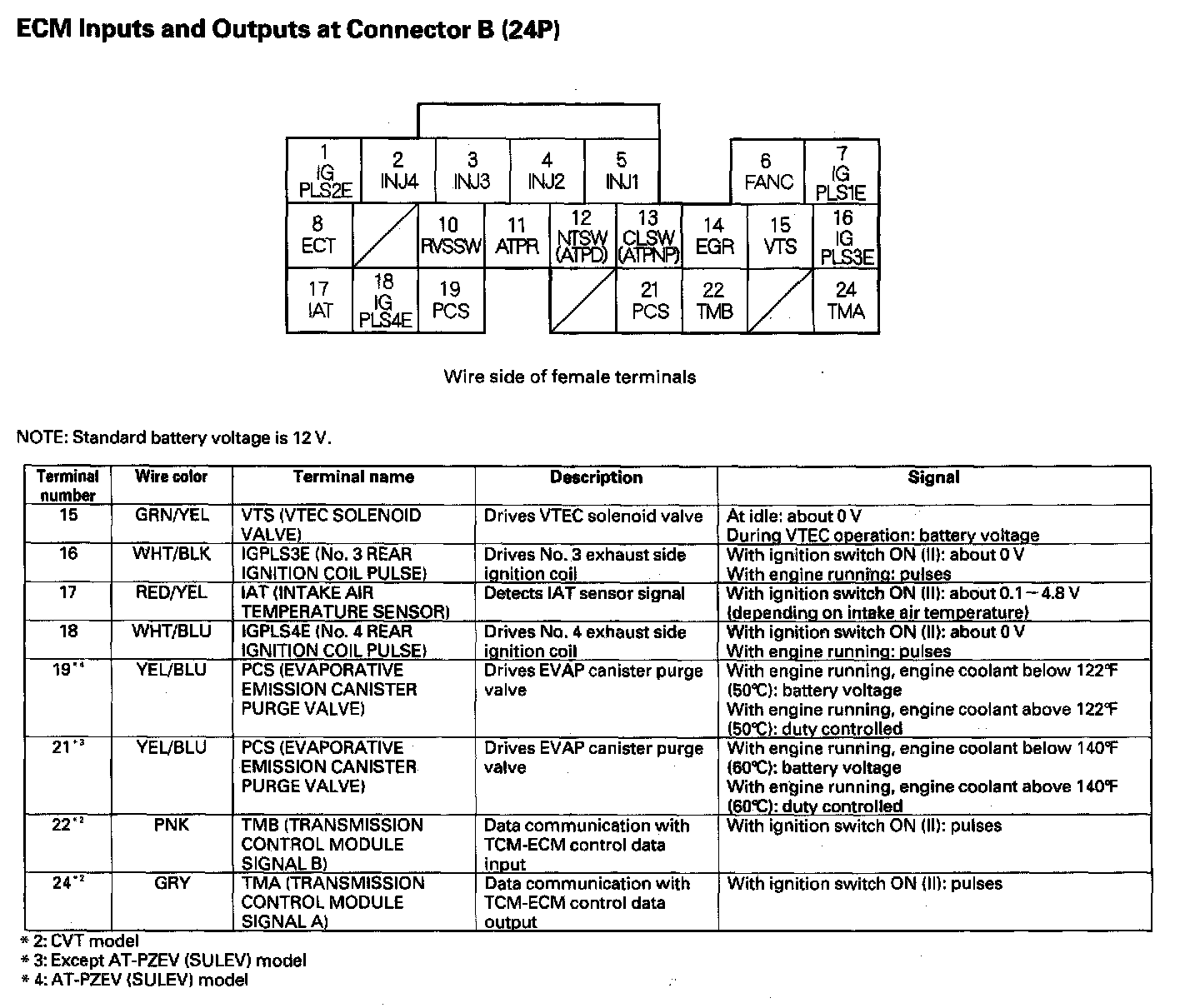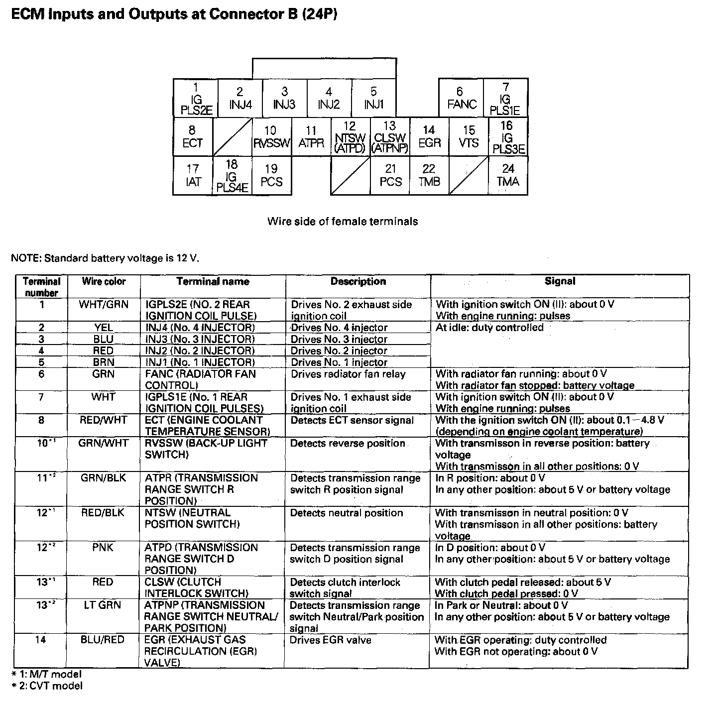 ECM Inputs And Outputs At Connector B (24P):