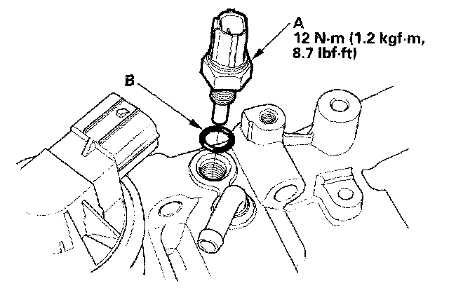 3. Install the sensor in the reverse order of removal with a new O-ring (B), then refill the radiator with engine coolant.