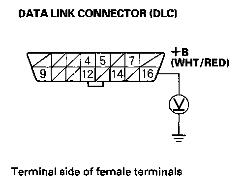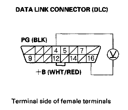2. Measure voltage between DLC terminals No. 4 and No.16.