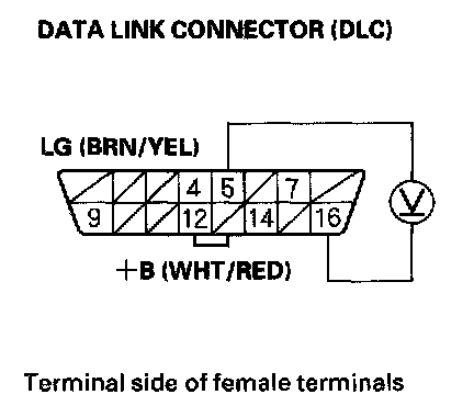 3. Measure voltage between DLC terminals No. 5 and No.16.
