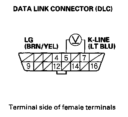 13. Measure voltage between DLC terminals No. 5 and No. 7.