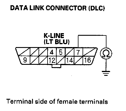 8. Check for continuity between DLC terminal No. 7 and body ground.
