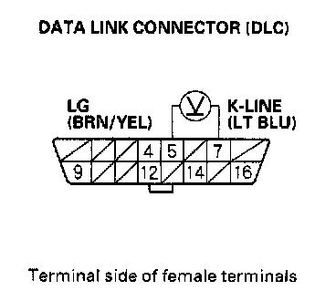 5. Measure voltage between DLC terminals No. 5 and No. 7.