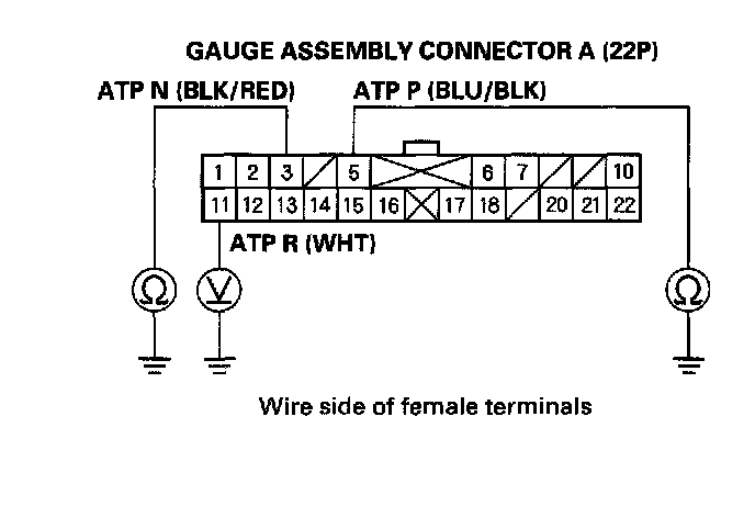 2. If the MIL does not come on, and the A/T gear position indicator P, N, or R does not come on. Turn the ignition switch off, remove the gauge assembly from the dashboard, then disconnect gauge assembly connector A (22P) and B (22P).