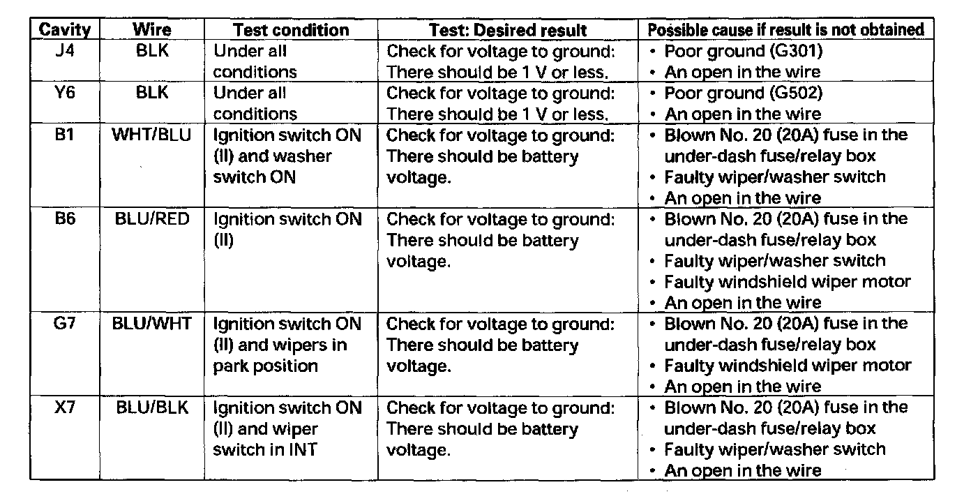 Home >> Honda >> 2004 >> Civic L4-1.7L CNG >> Repair and Diagnosis >> Wiper and Washer Systems >> Windshield Washer Control Module >> Testing and Inspection