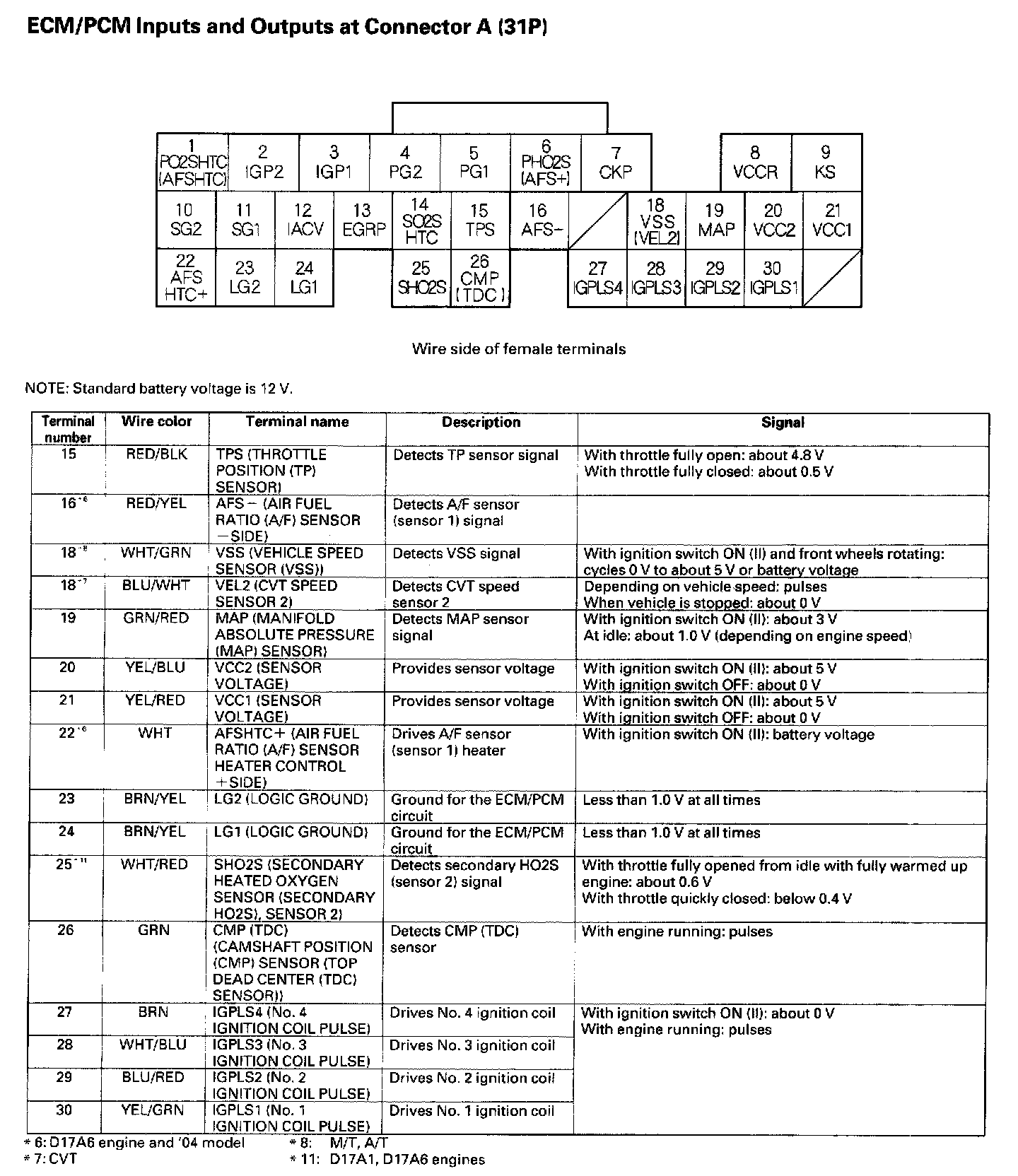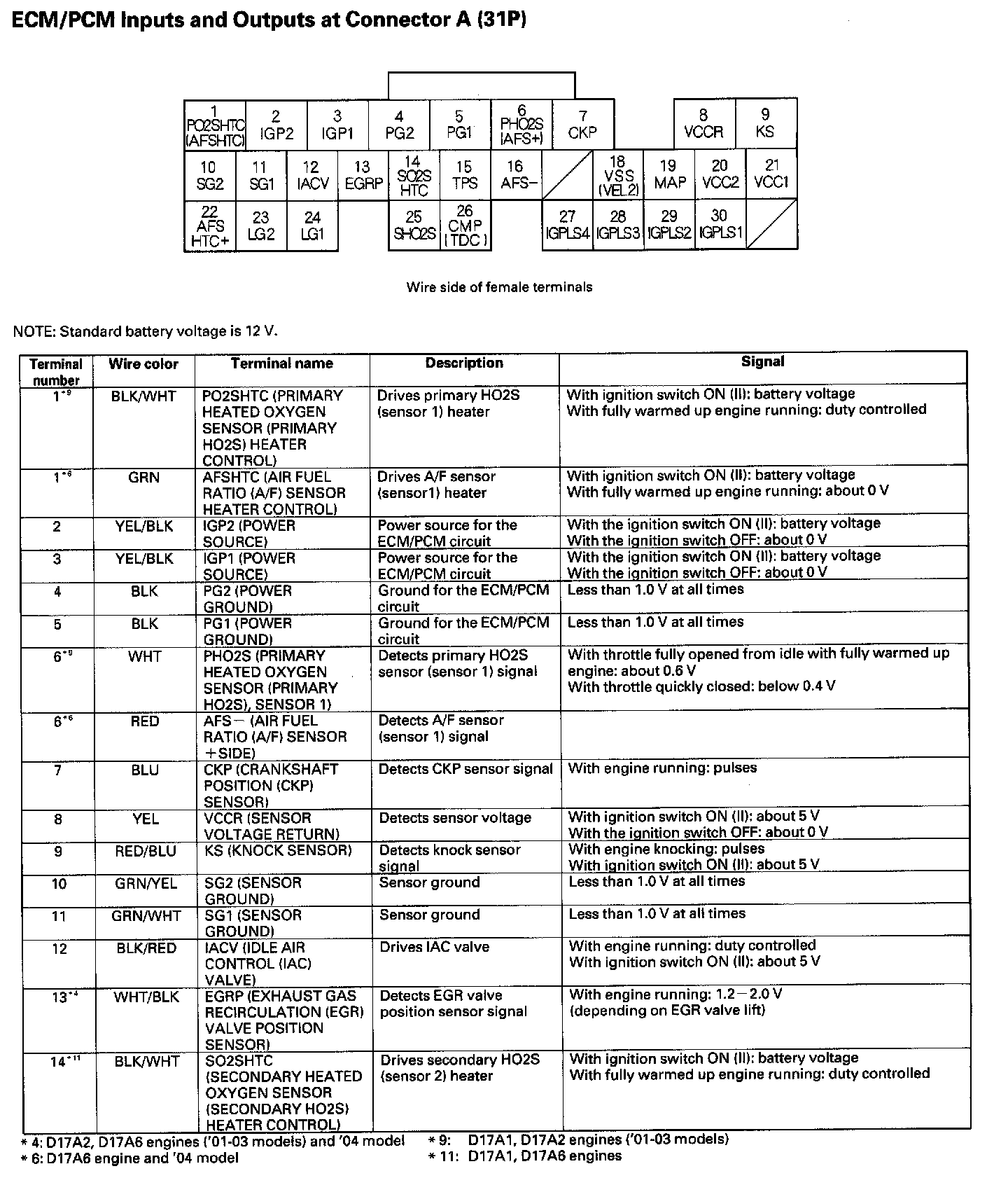 ECM/PCM Inputs And Outputs at Connector A (31P) Part 1:
