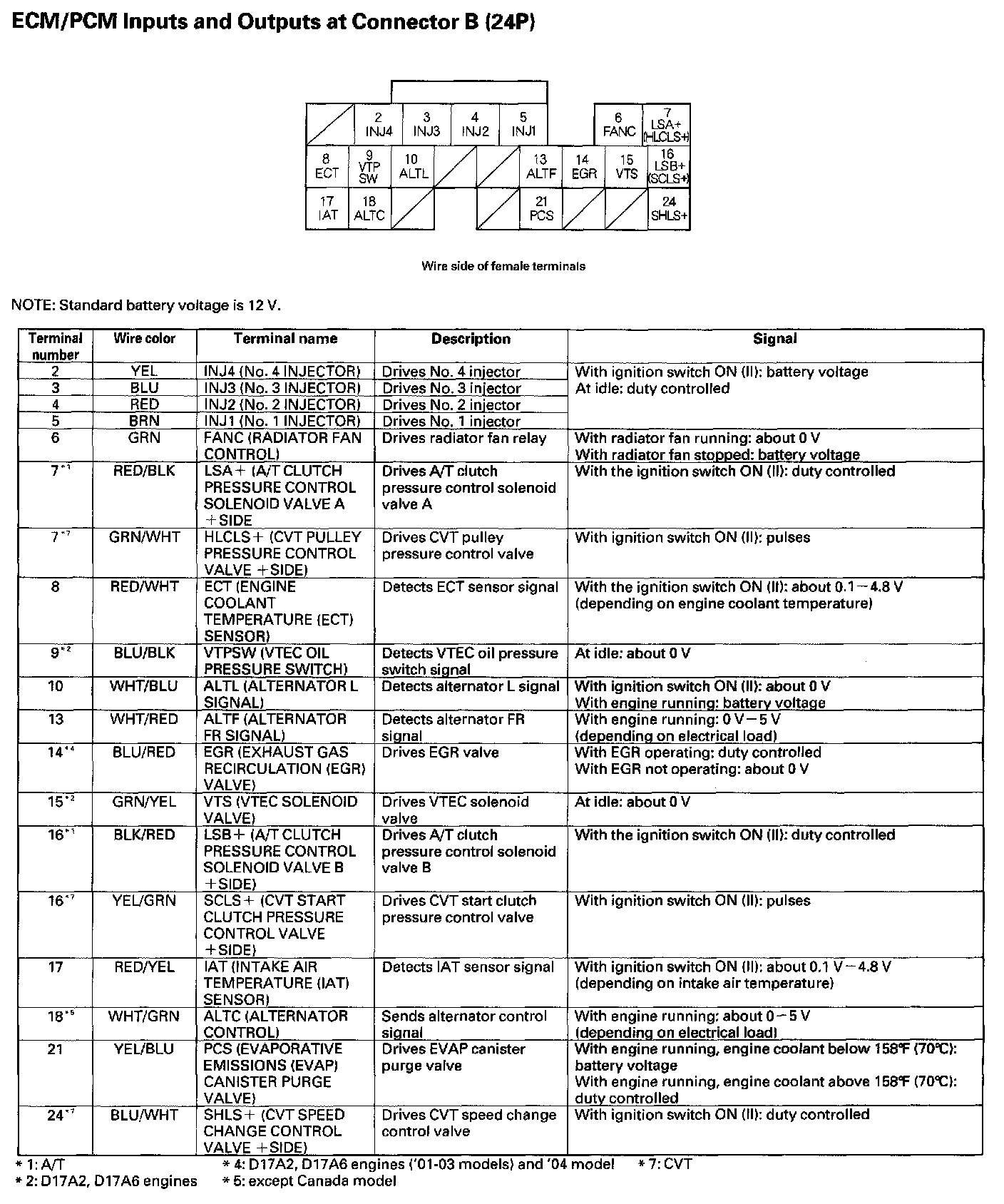ECM/PCM Inputs And Outputs at Connector B (24P):