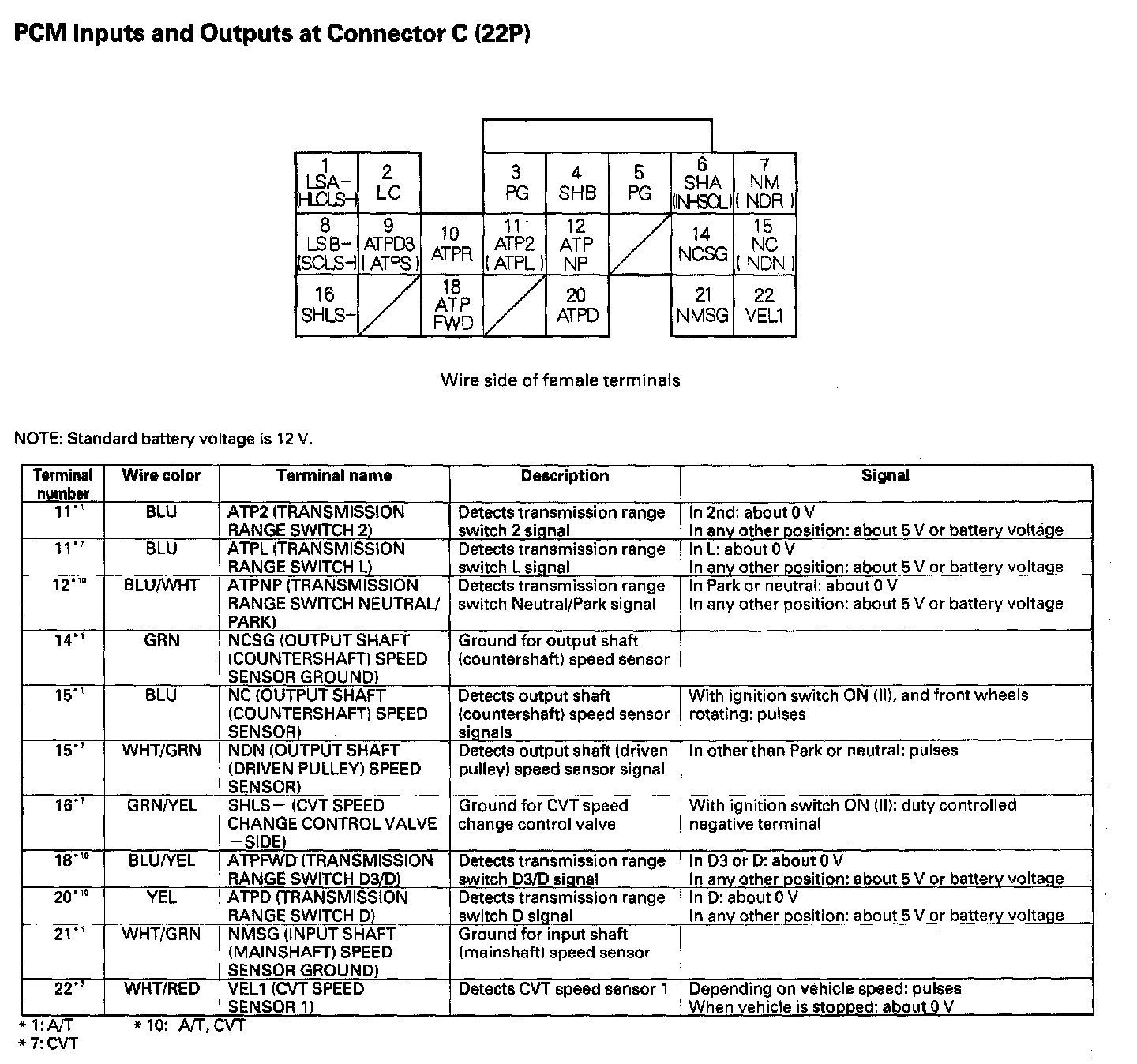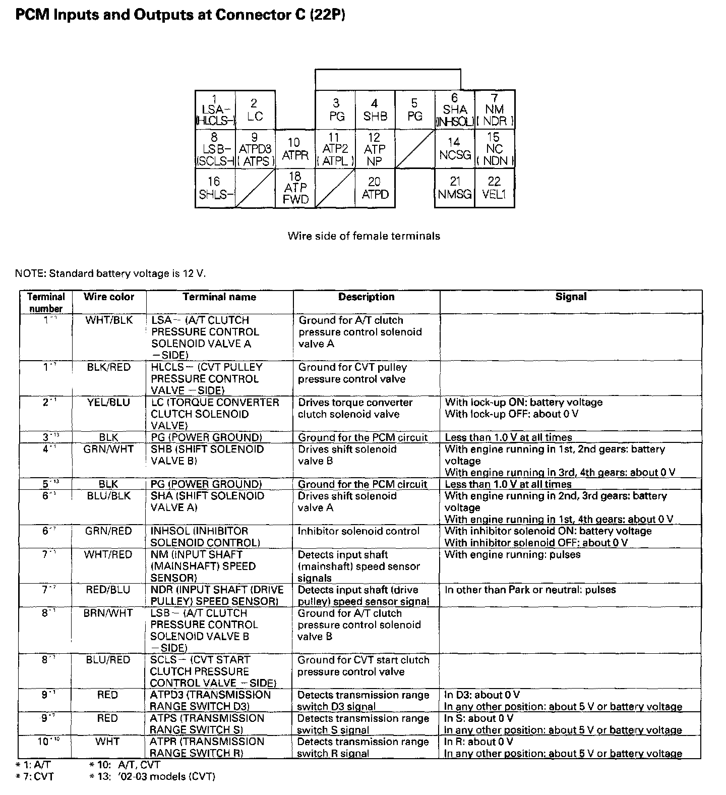 PCM Inputs And Outputs At Connector C (22P) Part 1: