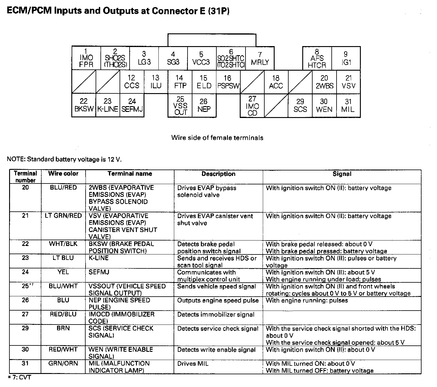 ECM/PCM Inputs And Outputs at Connector E (31P) Part 1: